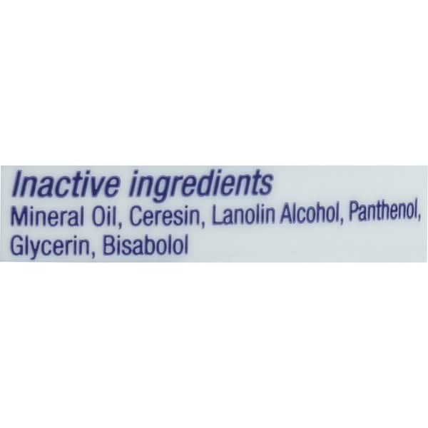 Inactive Ingredients: Mineral Oil, Ceresin, Lanolin Alcohol, Panthenol, Glycerin, Bisabolol