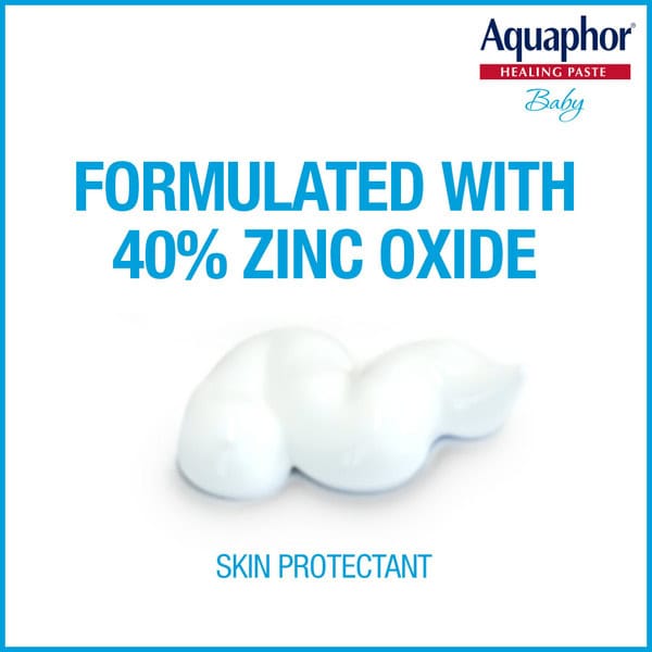 Aquaphor Baby Diaper Rash Paste provides immediate soothing relief in just one application and protects your baby’s delicate skin from diaper rash. Enriched with natural Shea Butter, the creamy, non-sticky formula is gentle to apply and easy to clean off. Compared to Aquaphor Baby Rash Cream, the diaper rash paste is formulated with maximum strength 40% Zinc Oxide to intensively treat diaper rash and create a barrier to protect your baby’s irritated skin.
