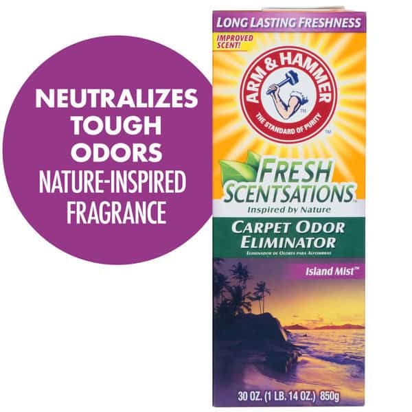 Escape to the freshness of a tropical paradise! Eliminate even tough carpet odors with a rich island citrus scent inspired by nature. Use every time you vacuum to absorb and eliminate odors from smoke, mold, and mildew, and leave behind a pleasant fragrance for long-lasting freshness. It couldn’t be easier: simply sprinkle, vacuum and you’re done. Made with odor neutralizing ARM & HAMMER Baking Soda, ARM & HAMMER Carpet Odor Eliminator is a low cost way to transform your home into an oasis.