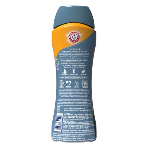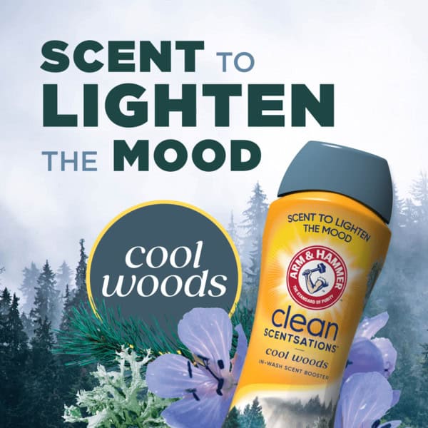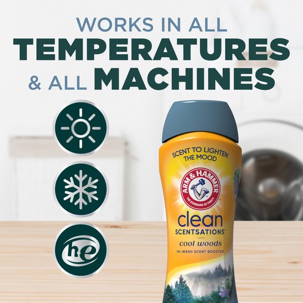 Boost your laundry routine with 120 hours of lasting freshness (1) when you add ARM & HAMMER Clean Scentsations In-Wash Scent Booster to every load. In a fresh Cool Woods scent, tiny scent beads deliver a bold fragrance that blends zesty citrus with rich woods and cool amber to transport you to the heart of a crisp, clean forest. This laundry scent booster is infused with the trusted freshening power of ARM & HAMMER Baking Soda. ARM & HAMMER in-wash scent crystals dissolve in cold water, and work in HE and standard laundry machines. This laundry booster is safe for all colors, machine-washable fabrics, and load types. To use, simply fill the cap and pour into your washer drum, add clothes, add regular detergent, and wash per label directions. For a complete, powerful clean and lasting freshness in your laundry routine, use this laundry booster with ARM & HAMMER laundry detergent liquid or Power Paks.