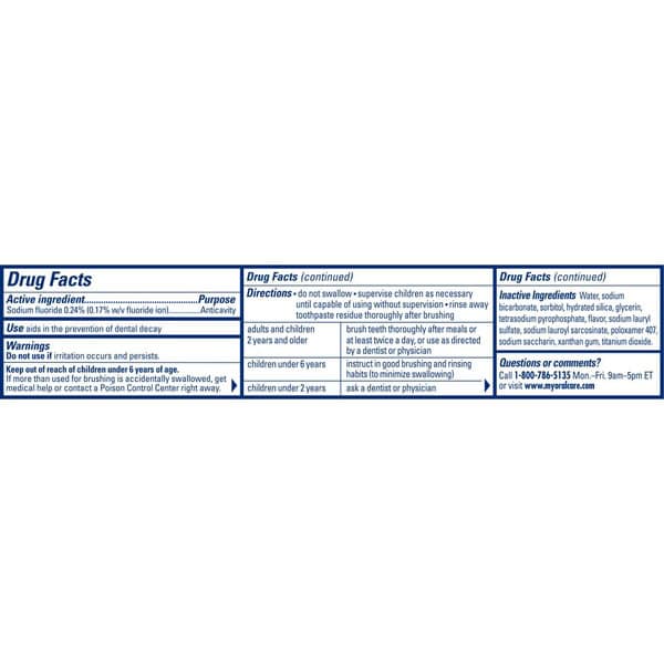 Inactive Ingredients: Water, Sodium Bicarbonate, Sorbitol, Hydrated Silica, Glycerin, Tetrasodium Pyrophosphate, Flavor, Sodium Lauryl Sulfate, Sodium Lauroyl Sarcosinate, Poloxamer 407, Sodium Saccharin, Xanthan Gum, Titanium Dioxide