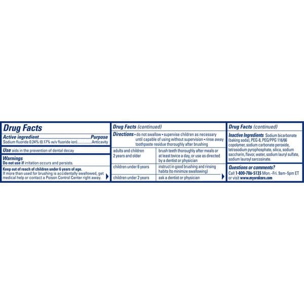 Inactive Ingredients: Sodium Bicarbonate (baking Soda), Peg-8, Peg/ppg 116/66 Copolymer, Sodium Carbonate Peroxide, Tetrasodium Pyropshosphate, Silica, Sodium Saccharin, Flavor, Water, Sodium Lauryl Sulfate, Sodium Lauroyl Sarcosinate