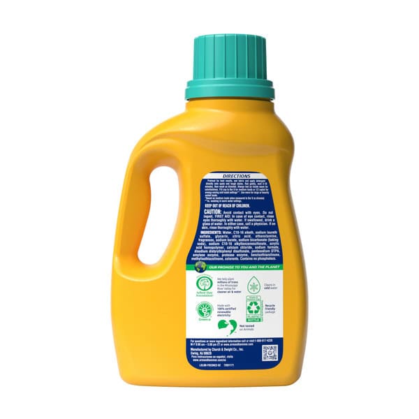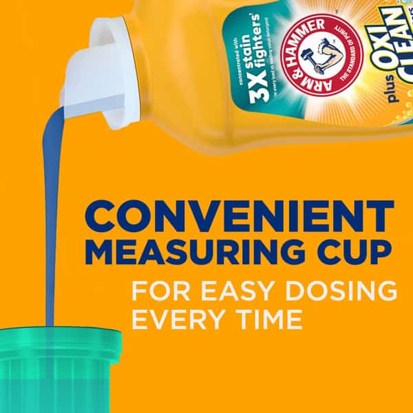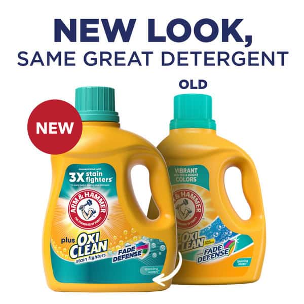 Help prevent fading to keep clothes looking newer longer with ARM & HAMMER Plus OxiClean with Fade Defense Liquid Laundry Detergent. This detergent is concentrated with 3X powerful stain fighters in every load versus the leading value detergent. It helps keep your whites vibrant and colors bright with Fade Defense technology, combined with ARM & HAMMER freshness and supercharged with OxiClean stain fighters! With the 5-in-1 power of a stain fighter, deep cleaner, whitener, brightener, and lasting freshness all in one bottle, it powers out microscopic stains and dirt to deliver a hygienic clean. Our advanced liquid laundry detergent is specially formulated to work in both standard washers and today’s energy conscious High Efficiency (HE) models with a fantastic fresh scent that leaves your clothes with the clean fragrance of Sparkling Waters. It’s an ideal laundry detergent for darks and colors that delivers the concentrated washing detergent value and OxiClean stain-fighting power you deserve.