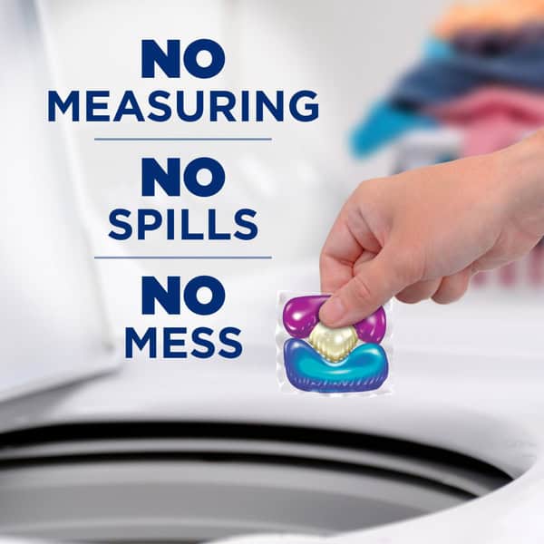 Directions: 1. Align to notch. 2. Push down and slide to open. 3. Add paks to drum before clothes. 4. Reclose. If zipper does not close, press both sides firmly until it clicks. 1 Pak: Regular or lightly soiled loads. 2 Paks: Large loads, heavily soiled loads, or tough odors. Always handle with dry hands, wash hands after use.