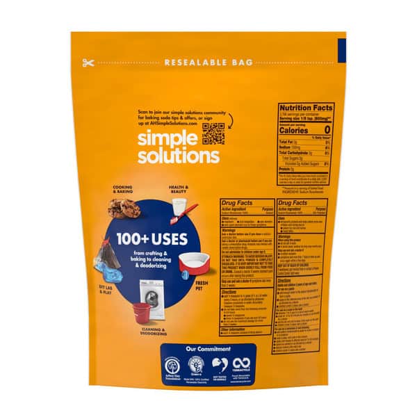 Discover the endless possibilities and uses for ARM & HAMMER Baking Soda, the simple and versatile solution for a clean and fresh home. ARM & HAMMER is America’s number-1 trusted Baking Soda brand. You know that pure Baking Soda is great for cooking and baking. Now, discover more than 100 ways to use Baking Soda, from cleaning your carpets to getting rid of pet odors, making laundry sparkle, creating inexpensive crafts for kids, and even enjoying a spa-worthy pedicure. When you need a quick and gentle solution to mop dirty kitchen floors, scrub bathroom countertops, and clean toys, furniture, and pots and pans, use Baking Soda for cleaning and refreshing every room in your home. This 5 lb Baking Soda bulk resealable bag makes it convenient to use just what you need for any big or small household cleaning task. As a natural odor eliminator, cleaner, and deodorizer with so many uses, make pure ARM & HAMMER Baking Soda an essential in your home.