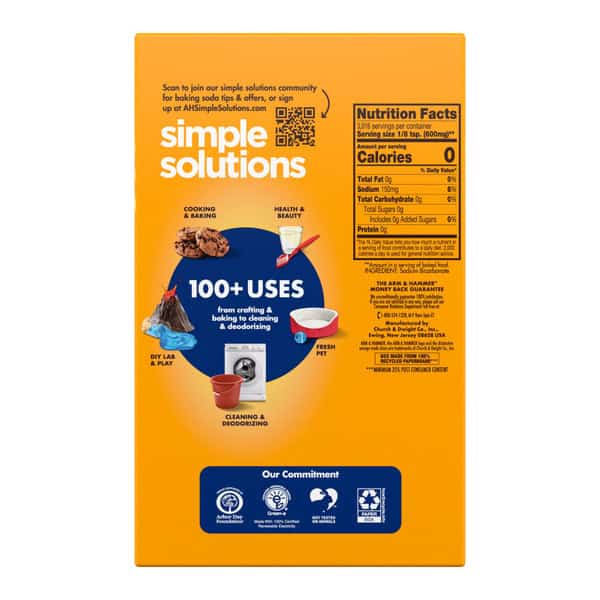 Discover the endless possibilities and uses for ARM & HAMMER Baking Soda, the simple and versatile solution for a clean and fresh home. ARM & HAMMER is America’s number-1 trusted Baking Soda brand. You know that pure Baking Soda is great for cooking and baking. Now, discover more than 100 ways to use Baking Soda, from cleaning your carpets to getting rid of pet odors, making laundry sparkle, creating inexpensive crafts for kids, and even enjoying a spa-worthy pedicure. When you need a quick and gentle cleaning solution to mop dirty kitchen floors, scrub bathroom countertops, and clean toys, furniture, and pots and pans, we’ve got tips to clean and refresh every room in your home. This 4 lb box of pure Baking Soda is the perfect size to use all around your home. As a natural odor eliminator, cleaner, and deodorizer with so many uses, make pure ARM & HAMMER Baking Soda an essential in your home.