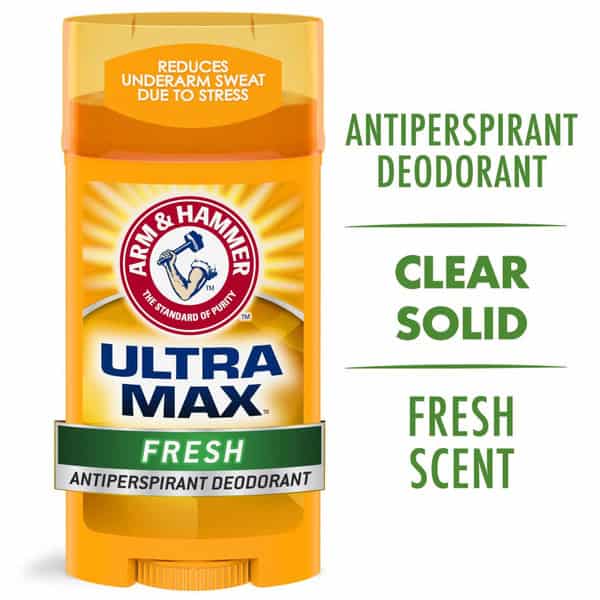 ARM & HAMMER ULTRA MAX decreases underarm wetness and reduces underarm sweating due to stress. With the natural power of baking soda, we help you feel and smell your best. With ULTRA MAX you can fight odor and confidently go about your day. Sweat and odor can be a problem for men and women, but with ARM & HAMMER ULTRA MAX you can stay ULTRA fresh!