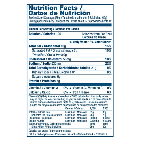 Sausage: Mechanically Separated Chicken, Water, Salt. Contains 2% Or Less Of: Corn Syrup, Dextrose, Sodium Erythorbate, Natural Flavors, Sodium Nitrite, Garlic Powder. Broth: Chicken Broth.