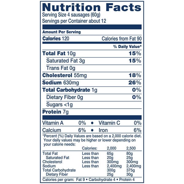Sausage: Mechanically Separated Chicken, Water, Salt, Corn Syrup. Contains 2% Or Less Of: Beef, Pork, Dextrose, Natural Flavors, Sodium Nitrite , Garlic Powder. Broth: Chicken Broth.