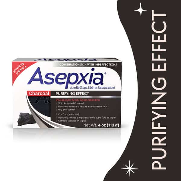 Experience enhanced acne control and profound skin purification with the Asepxia Activated Charcoal Cleansing Bar. This innovative cleansing bar is meticulously formulated with a potent blend of 2% salicylic acid and activated charcoal, making it an ideal solution for oily skin types and those seeking to reduce blackheads. The powerful combination of activated charcoal and salicylic acid acts as a dynamic anti-inflammatory and antibacterial agent, deeply penetrating the skin to promote gentle exfoliation and effectively keep the skin clear of blemishes, pimples, whiteheads, and blackheads.