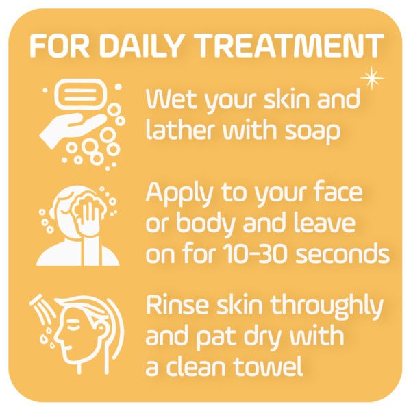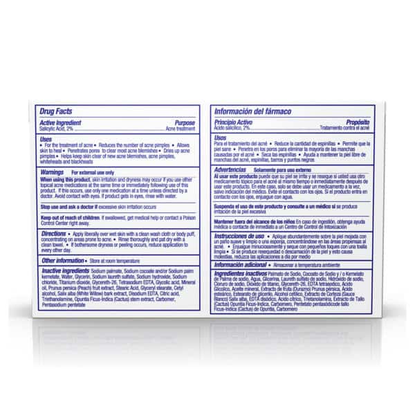 Directions Apply liberally over wet skin with a clean wash cloth or body puff, concentrating on areas prone to acne. Rinse thoroughly and pat dry with a clean towel. If bothersome dryness or peeling occurs, reduce application to every other day.