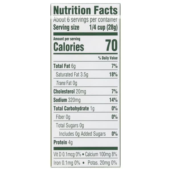 • Traditional crumbled feta cheese, easy shaker lid, 70 calories per ¼ cup, cow’s milk, rBST-free, gluten free, vegetarian friendly