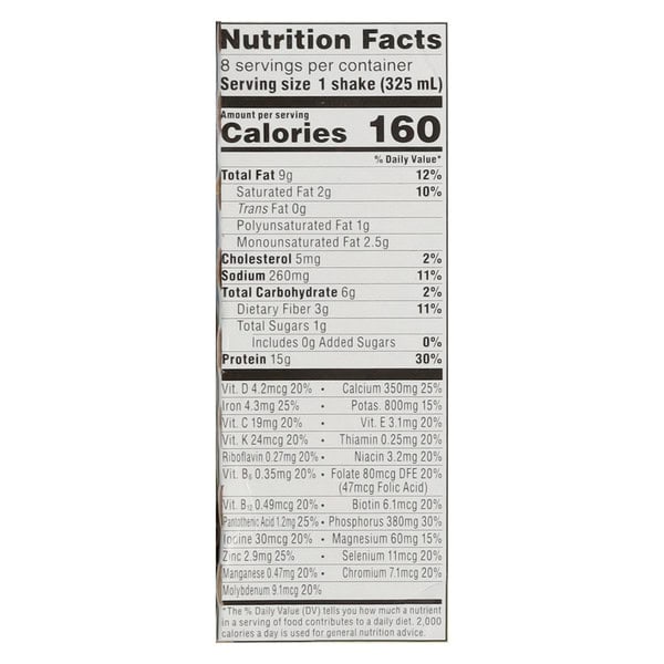 Water, Cocoa (processed With Alkali), Milk Protein Concentrate, Vegetable Oil (sunflower, Canola, And/or Soybean Oil), Soy Protein Isolate. Contains Less Than 1% Of Natural And Artificial Flavors, Cellulose Gel, Soluble Corn Fiber, Potassium Citrate, Tricalcium Phosphate, Dipotassium Phosphate, Salt, Cellulose Gum, Sucralose, Carrageenan, Soy Lecithin, Acesulfame Potassium, Sodium Ascorbate (vitamin C), Zinc Gluconate, Dl-alpha-tocopheryl Acetate (vitamin E), Manganese Gluconate, Niacinamide (vitamin B3), Phytonadione (vitamin K), Cholecalciferol (vitamin D3), D-calcium Pantothenate (vitamin B5), Sodium Selenite, Sodium Molybdate, Chromium Chloride, Biotin (vitamin B7), Cyanocobalamin (vitamin B12), Folic Acid (vitamin B9), Pyridoxine Hydrochloride (vitamin B6), Potassium Iodide, Thiamin Hydrochloride (vitamin B1), Riboflavin (vitamin B2).