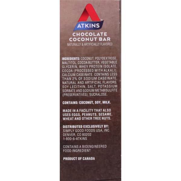 • SATISFY YOUR SWEET TOOTH. Atkins Chocolate Coconut Bars are packed with chocolatey and coconut flavor, with 2g of