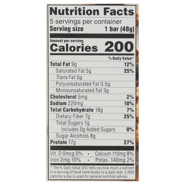 Enjoy Atkins Protein-Rich Chocolate Chip Granola Meal Bars! Each delicious bar is packed with 17g of protein, 3g net carbs, 1g of sugar and 7g of fiber. Our meal bars provide the perfect meal replacement or snack to keep you going throughout your day. Atkins Protein Rich Meal Bar Chocolate Chip Granola, 5-count.