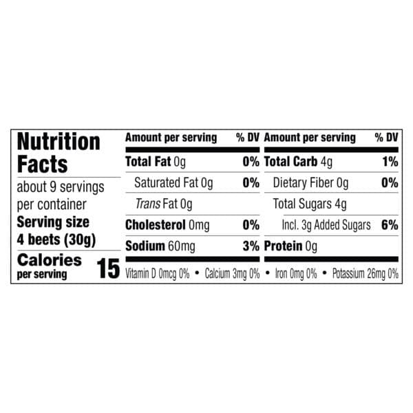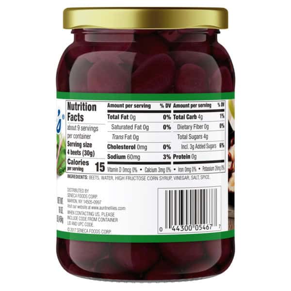 Beets, Water, High Fructose Corn Syrup, Vinegar, Salt, Spice.