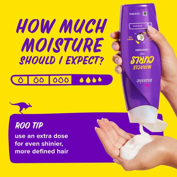 When you look at your hair in the mirror, does your curly or coily hair seem like it’s starting to feel a little frizzy around the edges? If the answer is yes, then it sounds like your hair needs a miraCURL! We’re here to let you know that Aussie’s Miracle Curls Conditioner, made with coconut oil, nourishes, moisturizes, and reduces frizz so much that you’ll wonder how you ever lived without it! So, whether your curls are bouncy or coily, now you can experience the luxuriant moisturization, deep hydration, and shine of Aussie’s Miracle Curls Conditioner every time you condition your hair. Simply apply a generous amount of Miracle Curls Conditioner to clean, wet curls, working it into your hair fully while you indulge in the fragrant scents of citrus, florals, and musk. You’ll feel the difference in your hair as the creamy conditioner delivers enhanced hydration from root to tip. Now, comb through your hair while rinsing thoroughly, dry, and enjoy your newly enhanced, fully hydrated, and gorgeously shining curls. Aussie Miracle Curls Conditioner is sure to put a spring in your step and your curls alike, saving your dry, damaged curls with its gorgeously moisturizing ways. Aussie is PETA certified cruelty-free.