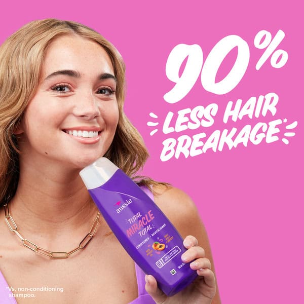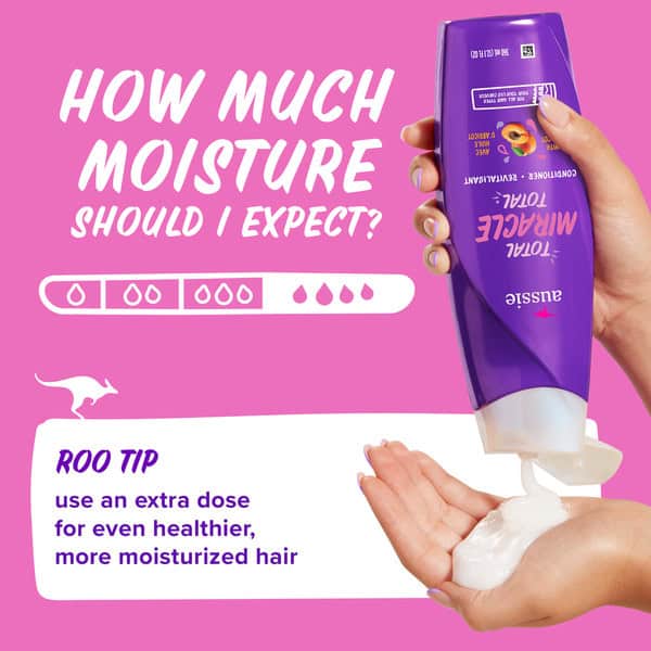 If you’re sick and tired of looking at dry and lifeless hair that is in desperate need of a total miracle to save it, then get ready to be wowed by Aussie Total Miracle Conditioner. Made for all types of hair, whether it’s straight, wavy, curly, or coily, Aussie’s Total Miracle Conditioner is ready and waiting to totally transform your look into hair that dazzles everyone you meet. From the very first time you use it, this moisturizing formula, made with apricot oil, delivers seven AUSSome benefits that are sure to rock your hair’s world: strengthening against damage, softness, split-end protection, moisture, humidity control, shine, and smoothing. Simply apply a generous amount of Aussie Total Miracle Conditioner to your clean, wet hair and work the conditioner in and then detangle using your fingers or a wide-tooth comb. As Aussie Total Miracle Conditioner works its magic, close your eyes, breathe, and take in the luxuriant scents of citrus, florals, and musk wafting around you and freshening your hair with a gorgeous scent that sticks around all day long. Rinse thoroughly, and enjoy the renewed strength and softness of your rejuvenated hair. AUSSome hair days, here you come! Aussie is a PETA certified cruelty-free brand.