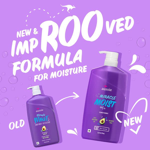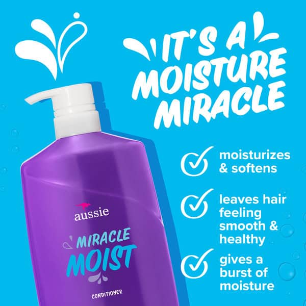 Whether you have hair that is straight, wavy, curly, or coily, you know what it looks like when it is crying out for moisture. If you are experiencing parched, flat, and dried-out hair, there’s now a better way to treat your beautiful tresses and deliver enhanced moisture with the renewed softness it deserves. Aussie Miracle Moist Conditioner is ready to rescue your hair with our creamy formula that has been made with avocado oil. Aussie Miracle Moist Conditioner moisturizes and softens hair, making this ultra-rich conditioner a must-have for your hair care routine-no matter what type of hair you have. In just a few minutes, it will transform that dry, thirsty hair into hydrated, care-free locks that look as spectacular as they feel! Simply apply a generous amount of Aussie Miracle Moist Conditioner to your clean, wet hair and work it in from root to tip. Use your fingers or a wide-tooth comb to detangle any knots before rinsing out. As you hydrate your hair and unlock its slip-through-your-fingers softness, close your eyes and bask in the scents of citrus, florals, and musk. Finally, a conditioner that nourishes your hair with all the moisture it deserves. AUSSome hair days, here you come! Aussie is a PETA certified cruelty-free brand.