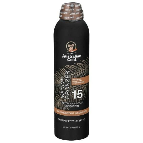 Australian Gold® Continuous Spray Gel Sunscreen with Instant Bronzer SPF 15.