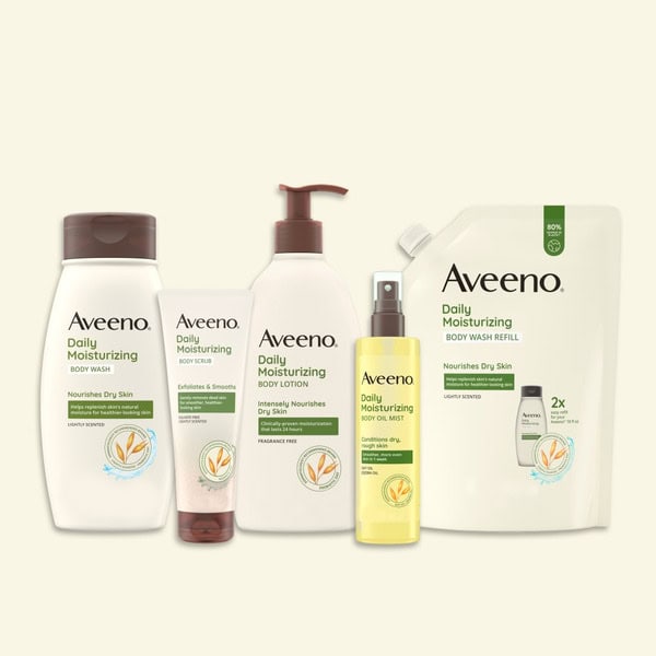 • After cleansing, follow with Aveeno Daily Moisturizing Body Lotion to lock in moisture for 24 hours