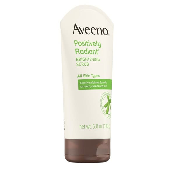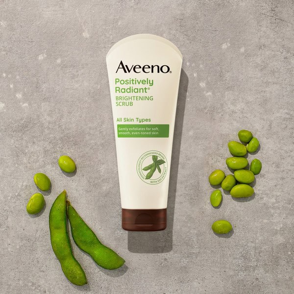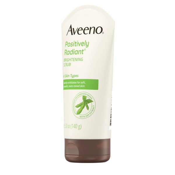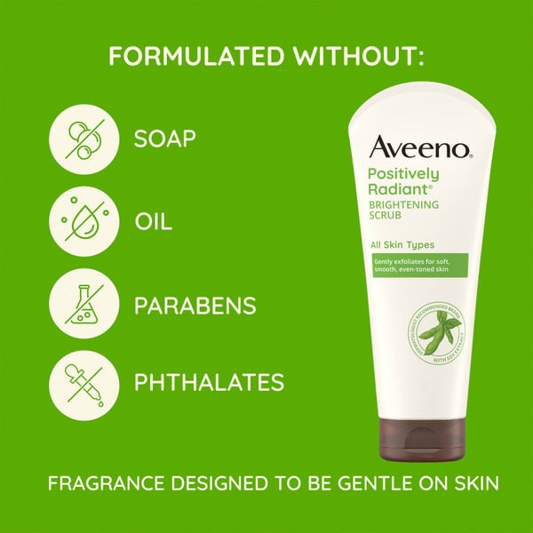 Gently buff away surface impurities, dead skin & oil for softer, brighter, more even-toned skin with Aveeno Positively Radiant Skin Brightening & Exfoliating Daily Face Scrub. It gently exfoliates skin & helps improve skin’s tone & texture & reveals radiant-looking skin. This scrub leaves skin looking smooth & feeling refreshed & makes skin feel silky after 1 day. The soap-free & oil-free formula combines moisture-rich soy extract with naturally derived granules to exfoliate & cleanse away dirt, oil, & bacteria. This cleanser is hypoallergenic, non-comedogenic & gentle enough for sensitive skin & everyday use in a regular beauty or skincare routine. From a dermatologist recommended skin care brand, the Positively Radiant collection is designed to help improve skin tone & texture & reveal radiant-looking skin to give you a lit-from-within glow. With soy extract, it targets skin tone & texture. To use, moisten face & gently massage scrub in circular motion. Rinse thoroughly & pat dry.