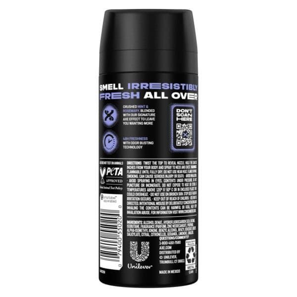 • This AXE Body Spray Deodorant comes in a new can design with infinitely recyclable metal