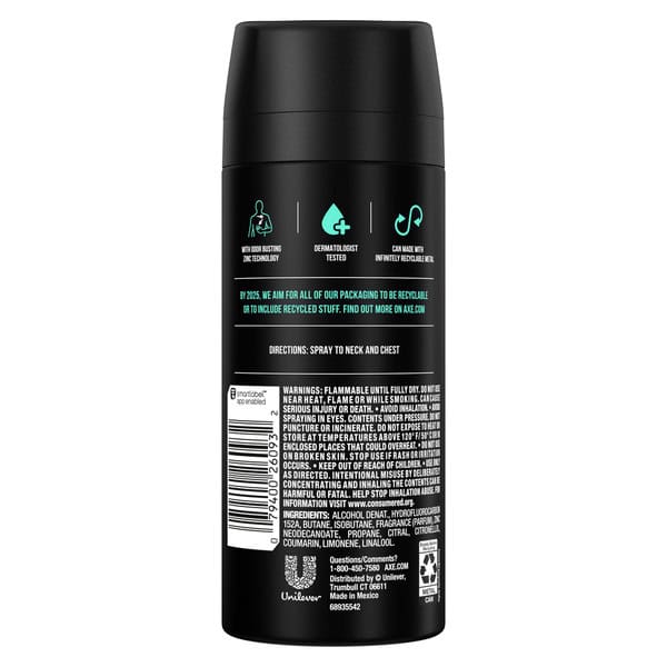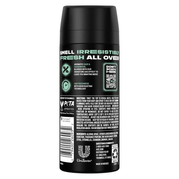 • This AXE Body Spray Deodorant comes in a new can design with infinitely recyclable metal