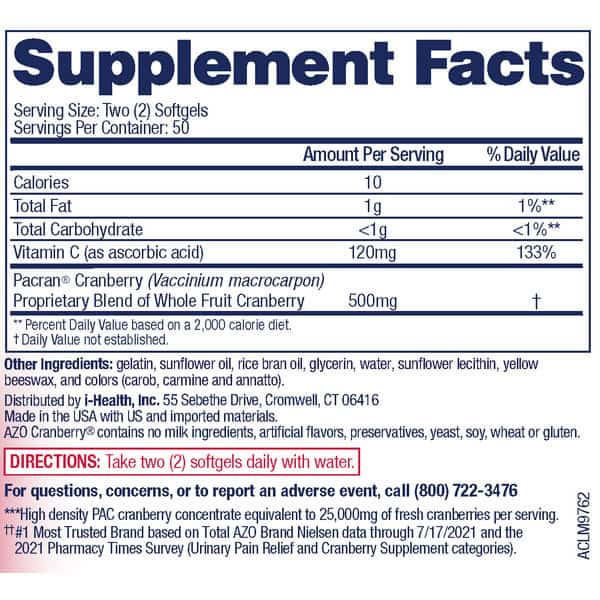 • MADE WITH CLINICALLY PROVEN PACRAN, a super-concentrated whole fruit cranberry powder that helps flush the urinary tract.* Not all cranberry products are created equal – Pacran in AZO Cranberry is clinically proven.