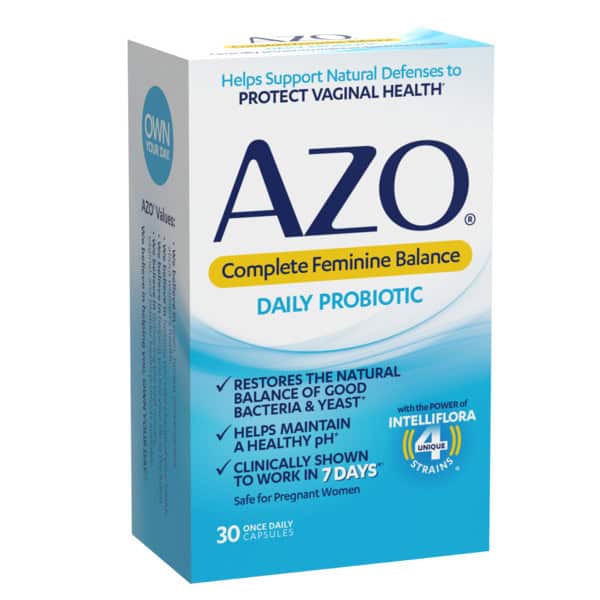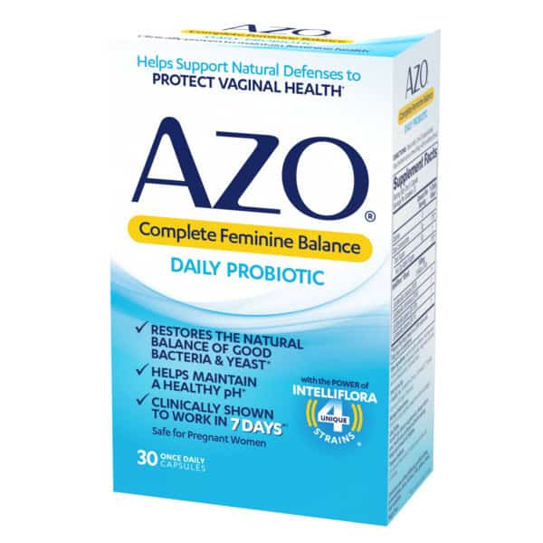 • PROBIOTICS FOR WOMEN Why AZO? Maintaining feminine health is quite a balancing act. Life happens fast and stress, your period, sex, hygiene, and even certain medications can disrupt your vaginal environment and throw off pH, leaving you feeling anything but balanced