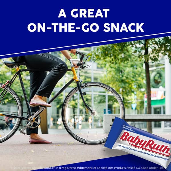 It’s time to get your sweet treat on with Baby Ruth Fun Size candy bars in a shareable bag. These peanuty, chocolatey and perfectly sized bars are small in size but big on taste. Packed with dry roasted peanuts, rich caramel and smooth nougat, these individually wrapped candy treats are easy to snack on and enjoy. The shareable pack lets you take these irresistible chocolate bars anywhere and share with anyone. They’re great for the home or office candy bowl, parties, get-togethers, dessert or a movie night sweet treat. Baby Ruth is made with no artificial flavors or colors. Baby Ruth Fun Size candy bars are the treat everyone knows and loves.