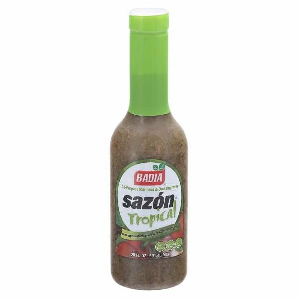 All-purpose marinade & dressing with Sazon Tropical. Gluten free. From vegetables to protein. No MSG. No artificial coloring added. A fresh and delicious marinade for meats, poultry, fish and seafood, and a flavorful dressing for your salads. www.badiaspices.com. Please recycle! Packed in U.S.A.