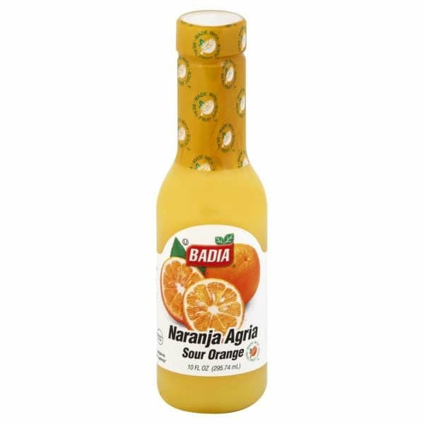 Gluten free food. Made with real fruit juice. No artificial coloring, sugar or salt added. Badia’s Sour Orange is made of real tropical fruit juices and is the preferred ingredient in the preparation of marinades for chicken and turkey and in the preparation of Mojito, a delicious dressing for cassava and green plantains. Visit our website: www.badiaspices.com. Please recycle! Packed in USA.