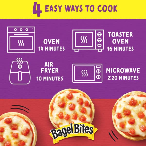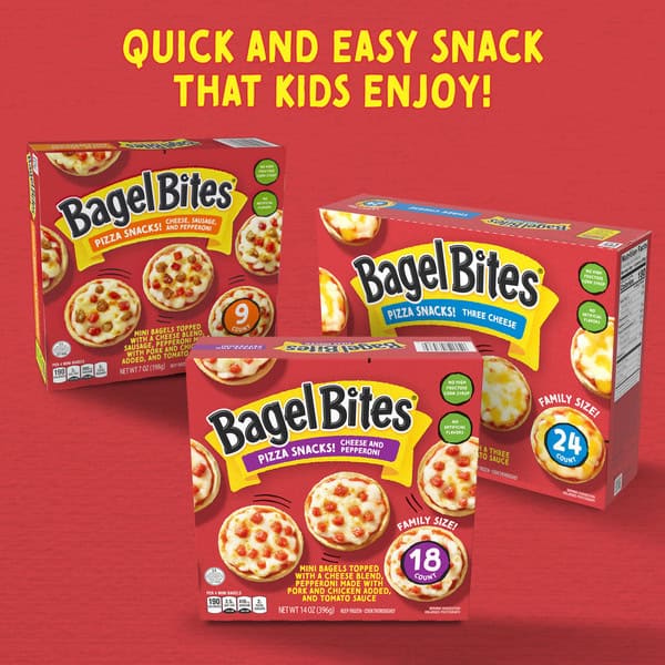 • Bagel Bites Cheese & Pepperoni Mini Bagels are an easy and fun frozen pizza snack
