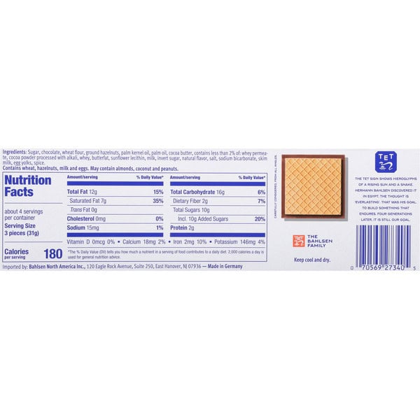 Contains wheat, hazelnuts, milk and egg. May contain almonds, walnuts, coconut, peanuts and soy.
