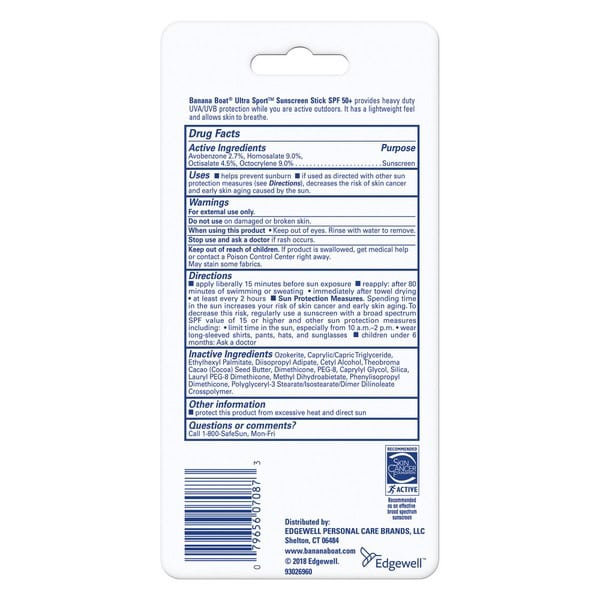 Banana Boat Ultra Sport Sunscreen Stick SPF 50+ with PowerStay Technology formula provides heavy duty protection while you are active outdoors. It has a lightweight feel and allows skin to breathe.