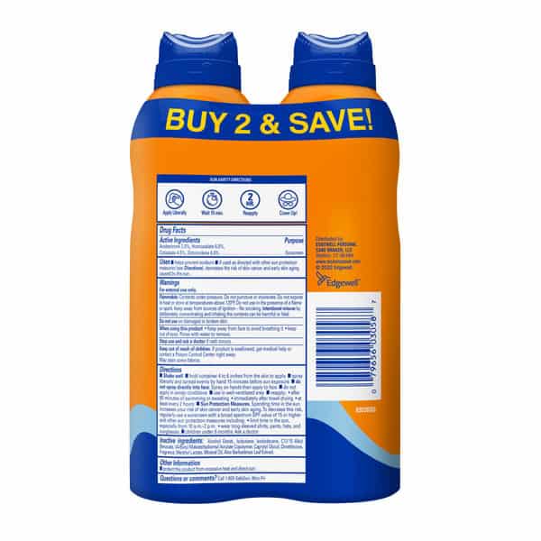 Shake well. Hold container 4 to 6 inches from the skin to apply. Spray liberally and spread evenly by hand 15 minutes before sun exposure. Do not spray directly into face. Spray on hands and then apply to face. Do not apply in windy conditions. Use in a well-ventilated area. Reapply: after 80 minutes of swimming or sweating; immediately after towel drying; at least every 2 hours. Children under 6 months: Ask a doctor. Sun Protection Measures. Spending time in the sun increases your risk of skin cancer and early skin aging. To decrease this risk, regularly use a sunscreen with a broad spectrum SPF value of 15 or higher and other sun protection measures including: limit time in the sun, especially from 10 a.m. to 2 p.m.; wear long-sleeved shirts, pants, hats, and sunglasses.