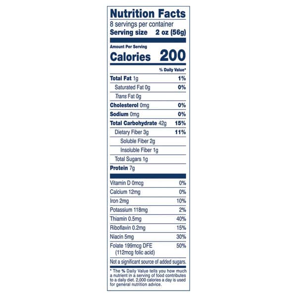 Semolina (wheat), Durum Wheat Flour, Vitamins/minerals: Vitamin B3 (niacin), Iron (ferrous Sulfate), Vitamin B1 (thiamine Mononitrate), Vitamin B2 (riboflavin), Folic Acid