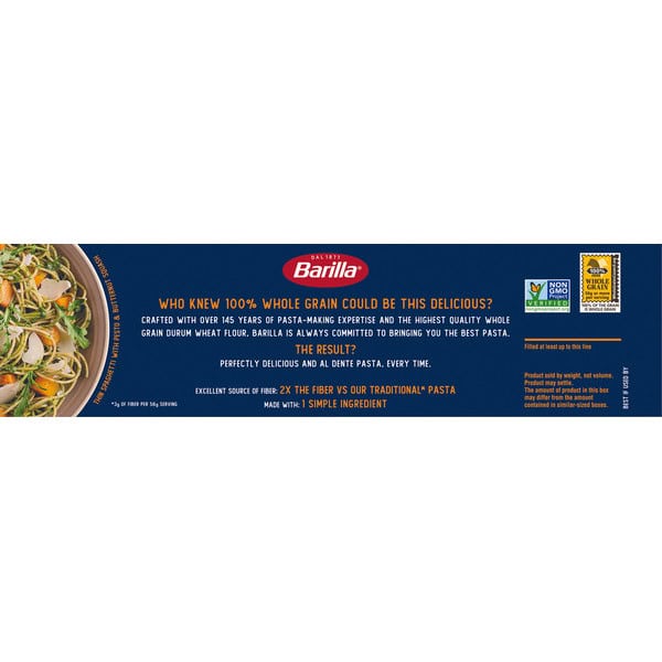 • WHOLE GRAIN: 2x the fiber of traditional Barilla pasta (3g of fiber per serving)
