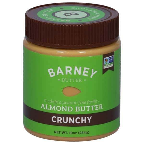 Barney Butter® Almond Butter Crunchy. Our blanched almonds leave the skins behind for the flavor and fun that comes from being completely naked! It’s our way of kicking convention to create the creamiest almond butter around. This is a Vegan, Gluten free and Non GMO Certified product.
