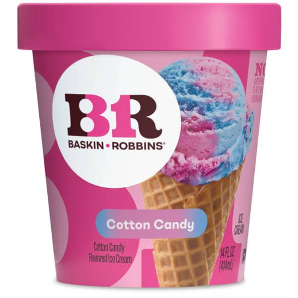 More flavors. More fun. Since Baskin-Robbins opened its first ice cream shop in 1945, it has become an American favorite. Now, you can enjoy the fun and great flavors of Baskin-Robbins at home anytime. Cotton Candy: Your favorite fluffy carnival treat is now your new favorite ice cream! Colorfully creamy and dreamy, our cotton candy flavored ice cream has no artificial dyes and all of the festive flavor we know you’ll love.