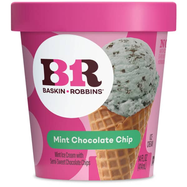 Mint ice cream with semi-sweet chocolate chips. More flavors. More fun. Since Baskin-Robbins opened its first ice cream shop in 1945, it has become an American favorite. Now, you can enjoy the fun and great flavors of Baskin-Robbins at home anytime. Mint Chocolate Chip: Chill out this creamy mint ice cream mixed with rich semi-sweet chocolate chips. Cool and sweet – that’s the ticket!