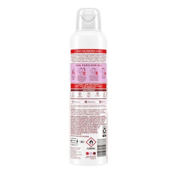 Take your hair from flat to fab with Batiste Volumizing Dry Shampoo. Batiste Volumizing Dry Shampoo is specially formulated with talc & silica which absorb oil while volumizing hair. Beanie-wearing Babes who never have time to fluff their hair post-commute will love Batiste Volumizing Dry Shampoo. So, will gym goddesses whose ponytails get weighed down after a sweaty workout. And life of the party types who need their naturally limp locks to stay perky all night. Our waterless formula targets excess oil, dirt, and grease at the roots to leave your hair feeling clean, bouncy and full of life. Batiste Dry Shampoo instantly makes your hair feel clean, fresh, with added body and texture. Perfect for the girl-on-the-go, use Batiste Dry Shampoo between washes to keep your hair looking fresh and fabulous without the effort. Let’s face it, life gets crazy sometimes and skipping a wash (or two) is inevitable. With Batiste Dry Shampoo, you can be confident your hair looks great no matter what life throws your way.