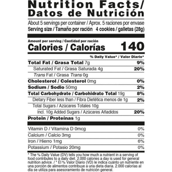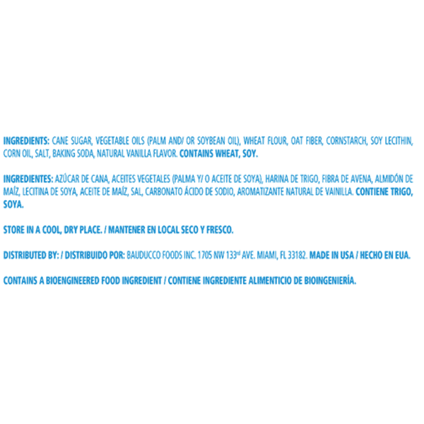 Cane Sugar, Vegetable Oils (palm And/ Or Soybean Oil), Wheat Flour, Oat Fiber, Cornstarch, Soy Lecithin, Corn Oil, Salt, Baking Soda, Natural Vanilla Flavor