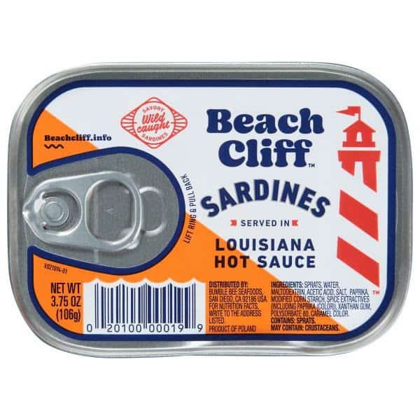 Spicy Louisiana-style hot sauce covered sardines, packed with protein.