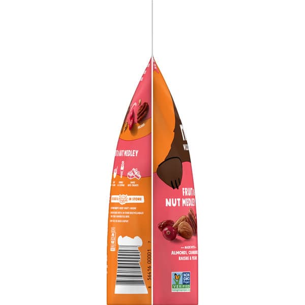 Every bag of granola starts with us foraging for irresistible flavors and bountiful chunks of goodness. Bear Naked Fruit and Nut Medley granola blends whole grain oats, roasted almonds and pecans with plump raisins and a dash of maple syrup and honey for a delectable sweet and savory combination. Cranberries add just enough tartness to balance it all out. After you try it, you’ll keep coming back for more handfuls; Non-GMO Project Verified, each serving contains 30g of whole grains. Perfectly prepared to snack out of the bag, enjoy in a bowl, sprinkle as a topping on your favorite desserts, or bake into treats. Take this pouch with you to the office, on a hike, or on road trips for easy resealable snacks. Trust us, the bears know how to sniff out wildly delicious flavors, and this granola is the perfect blend of crunchy pecans, roasted almonds, delicious fruits and soft-rolled oats. So next time your stomach growls, grab a pawful of Bear Naked granola!