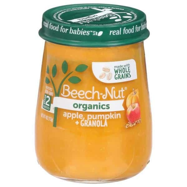Beech-Nut Organic Baby Food is made with USDA Certified Organic and Non-GMO ingredients. Our apple organic baby food puree has no artificial preservatives, colors or flavors and no added sweeteners–just what you’d expect for baby’s first foods. Our fruits and veggies are gently cooked to preserve color, flavor, and nutrients to create a puree that’s perfect for introducing solids. Free of the following allergens: dairy, gluten, peanut, soy, egg. This stage 1 baby food jar is ideal for your baby 4 months and up.
