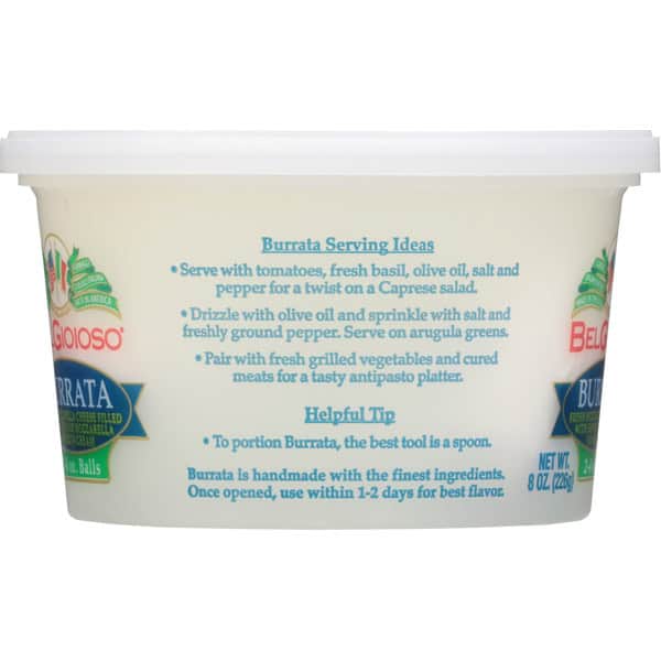 Burrata is handmade with the finest ingredients. Once opened, use within 1-2 days for best flavor. Consume within 1-2 days after opening.