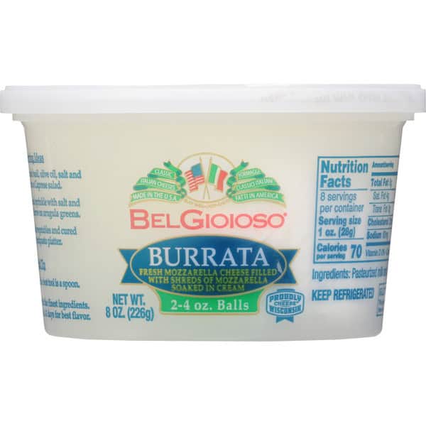 Burrata Serving Ideas: Serve with tomatoes, fresh basil, olive oil, salt and pepper for a twist on a Caprese salad. Drizzle with olive oil and sprinkle with salt and freshy ground pepper. Serve on arugula greens. Pair with fresh grilled vegetables and cured meats for a tasty antipasto platter.