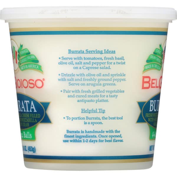 Burrata is handmade with the finest ingredients. Once opened, use within 1-2 days for best flavor.